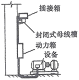 封閉式母線槽水平安裝時(shí),插接箱與封閉式母線槽是結(jié)合為一體的,其安裝位置較高,不便于今后的操作和維護(hù)。所以,插接箱內(nèi) 好不裝開(kāi)關(guān),僅裝連接導(dǎo)體和電纜,將電源引入附近安裝的壁掛式動(dòng)力箱內(nèi)(見(jiàn)圖3)。