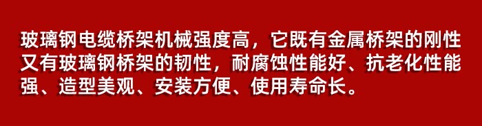 玻璃鋼大跨距電纜橋架產(chǎn)品具有保護(hù)電纜,絕緣性好,強(qiáng)度高,耐腐蝕,耐酸堿,抗老化,防火阻燃,環(huán)境適應(yīng)性好(-50℃—60℃)無(wú)毒,無(wú)味,重量輕