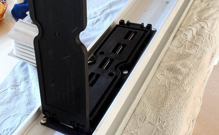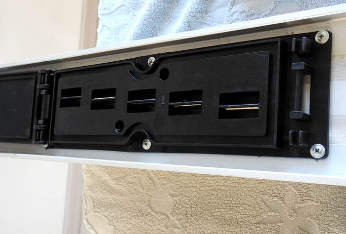 這個(gè)是蓋板掀開一半時(shí)候的情形圖片,這個(gè)插接孔扣板,是可以取下來(lái)的.