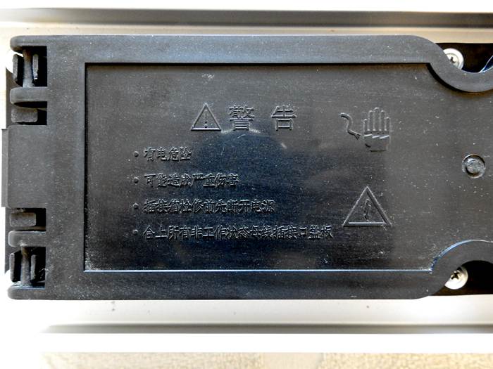 這個(gè)是扣上保護(hù)蓋板的狀態(tài)圖片,在不使用的時(shí)候都是扣住的,可以有效防止灰塵等雜物落入插孔內(nèi).當(dāng)需要臨時(shí)電源的時(shí)候,把扣板取下來(lái),拿插接箱直接就可以插上,在插接箱內(nèi)通過(guò)空開等元件 就可以輸出電流供用電設(shè)備使用.插接插接箱的時(shí)候,母線槽系統(tǒng)是不需要斷電的,也就是帶電插拔就可以.當(dāng)然,檢修的時(shí)候,是需要斷電的.